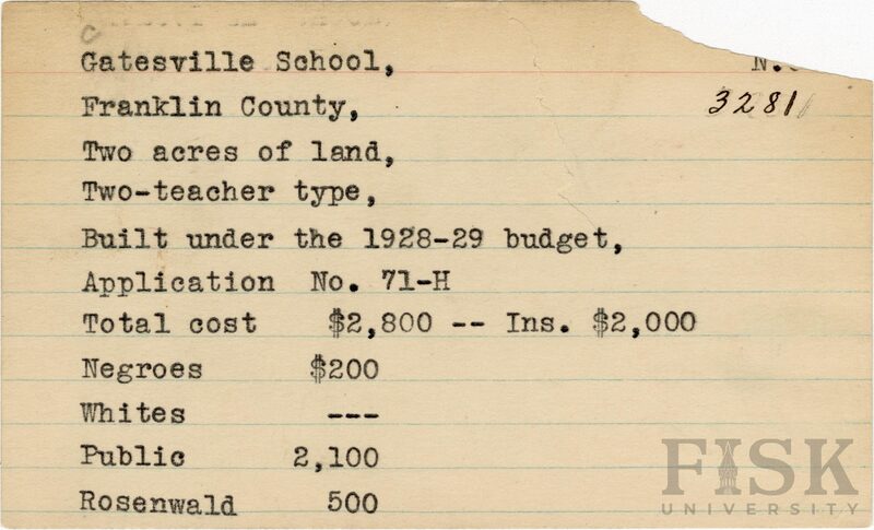 - Rosenwald Fund Card File, The Julius Rosenwald Fund Archives, 1918-1948, John Hope and Aurelia E. Franklin Library