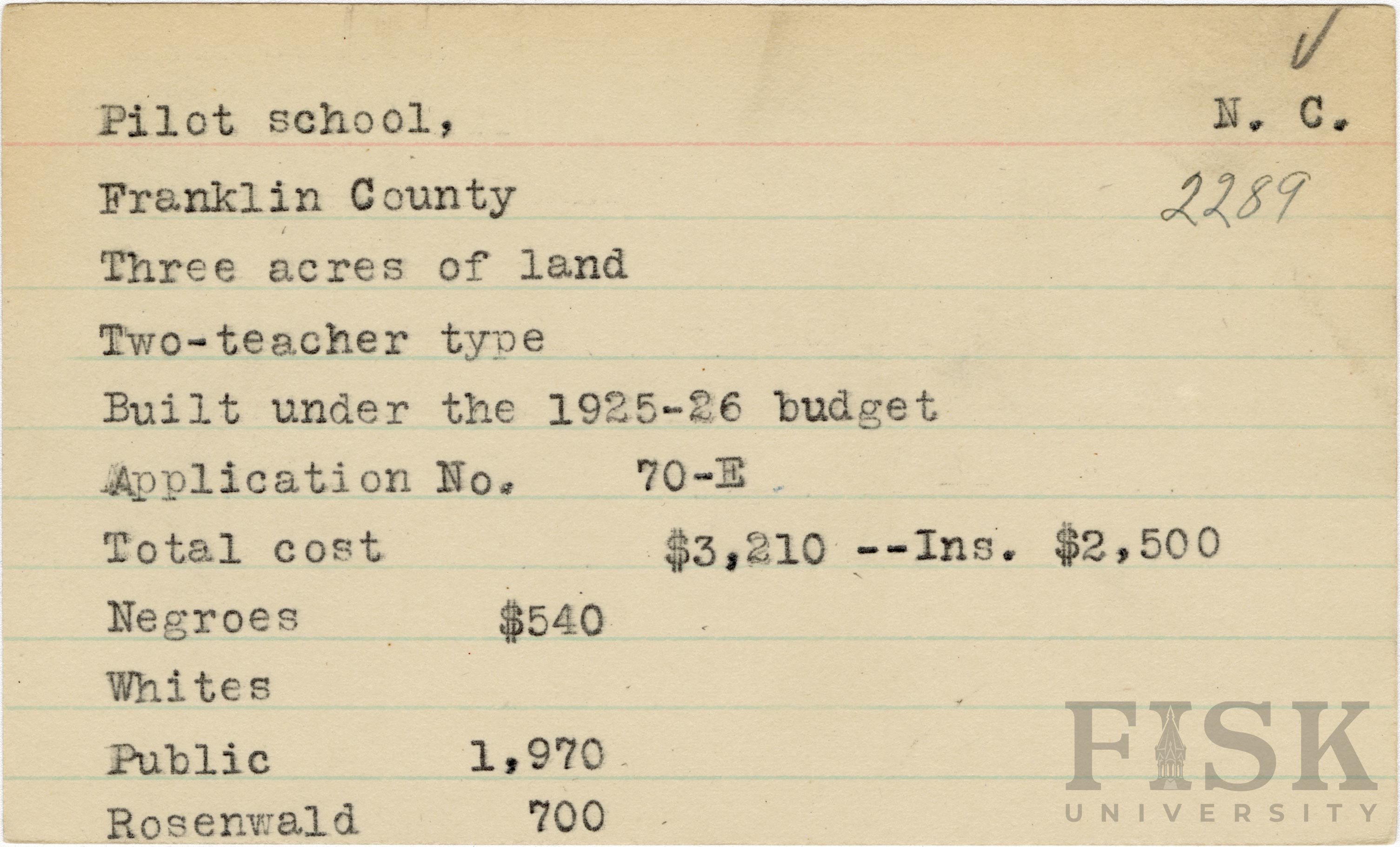 - Rosenwald Fund Card File, The Julius Rosenwald Fund Archives, 1918-1948, John Hope and Aurelia E. Franklin Library