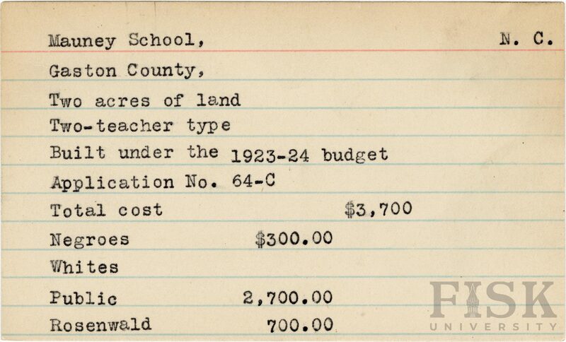 - Julius Rosenwald Fund--Buildings, African American schools--History--20th century, African American schools--Mauney School
