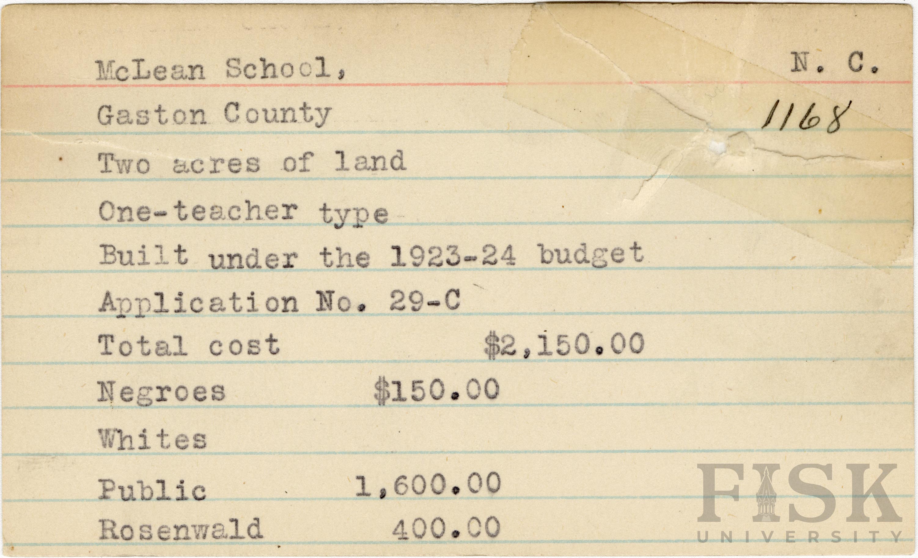 - Rosenwald Fund Card File, The Julius Rosenwald Fund Archives, 1918-1948, John Hope and Aurelia E. Franklin Library