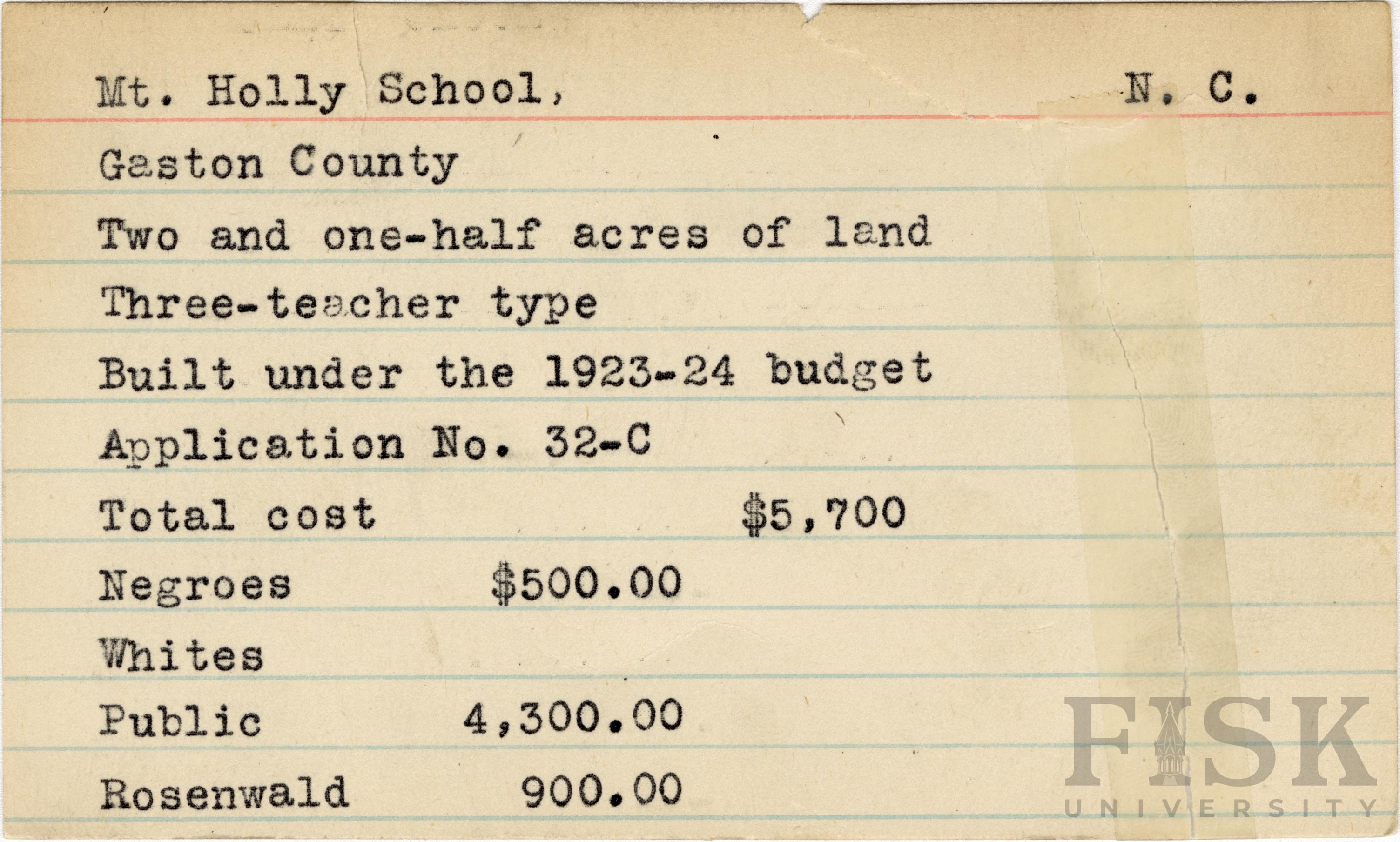- Rosenwald Fund Card File, The Julius Rosenwald Fund Archives, 1918-1948, John Hope and Aurelia E. Franklin Library