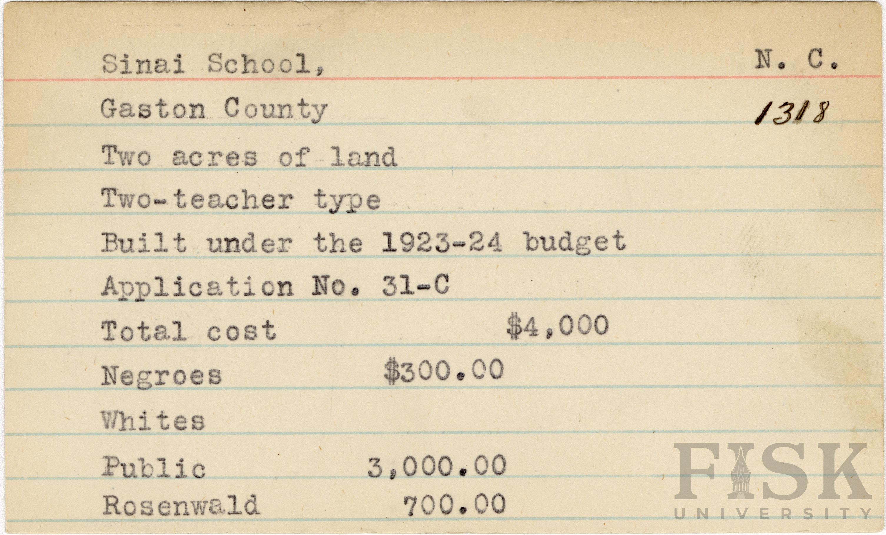 - Rosenwald Fund Card File, The Julius Rosenwald Fund Archives, 1918-1948, John Hope and Aurelia E. Franklin Library