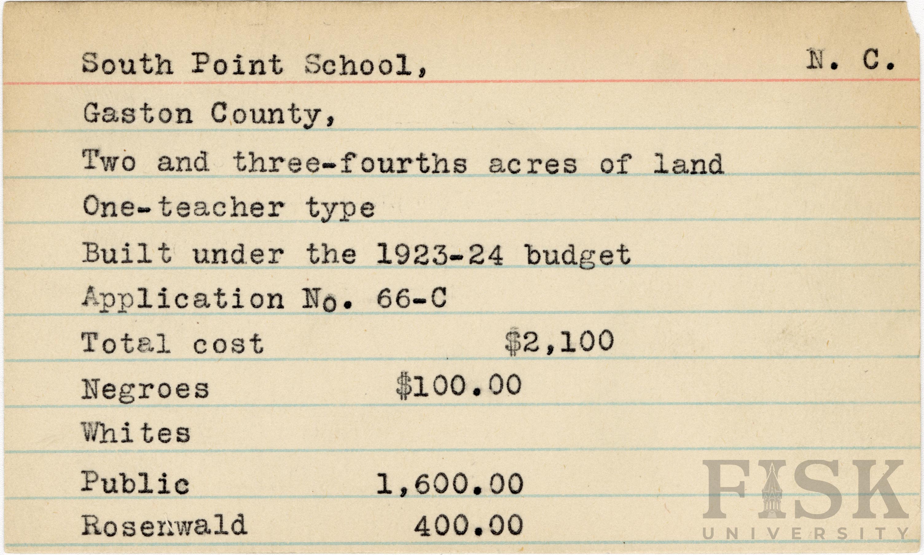- Julius Rosenwald Fund--Buildings, African American schools--History--20th century, African American schools--South Point School