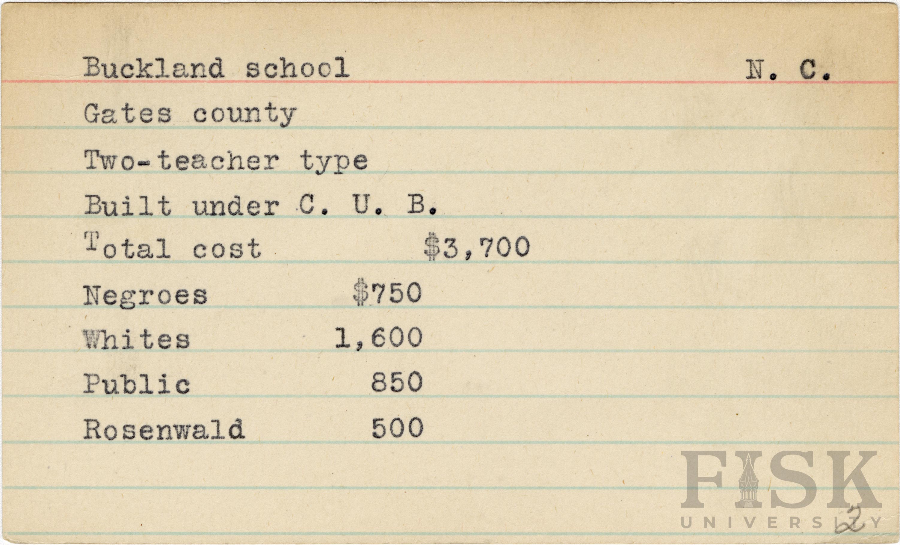 - Julius Rosenwald Fund--Buildings, African American schools--History--20th century, African American schools--Buckland School