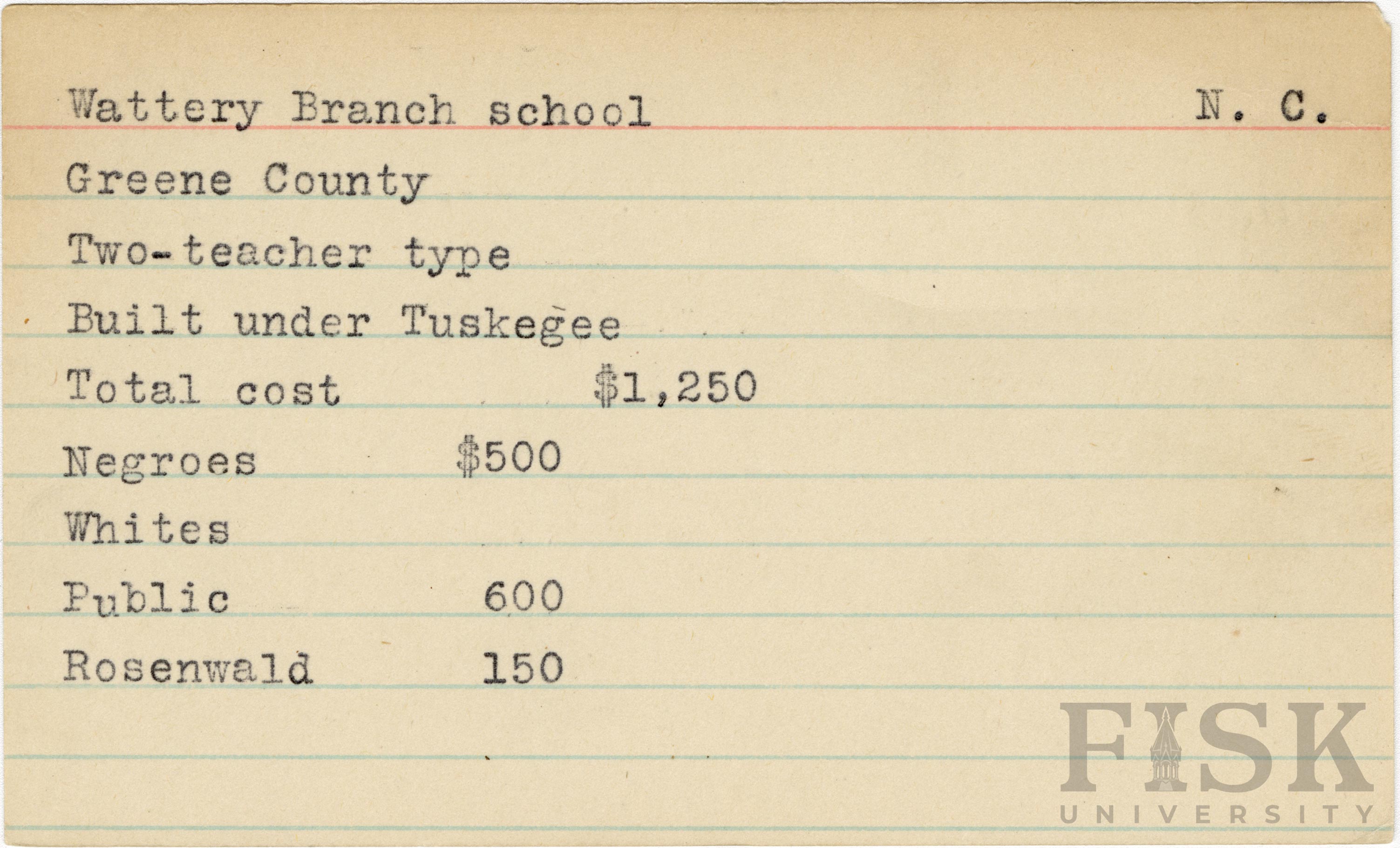 - Rosenwald Fund Card File, The Julius Rosenwald Fund Archives, 1918-1948, John Hope and Aurelia E. Franklin Library