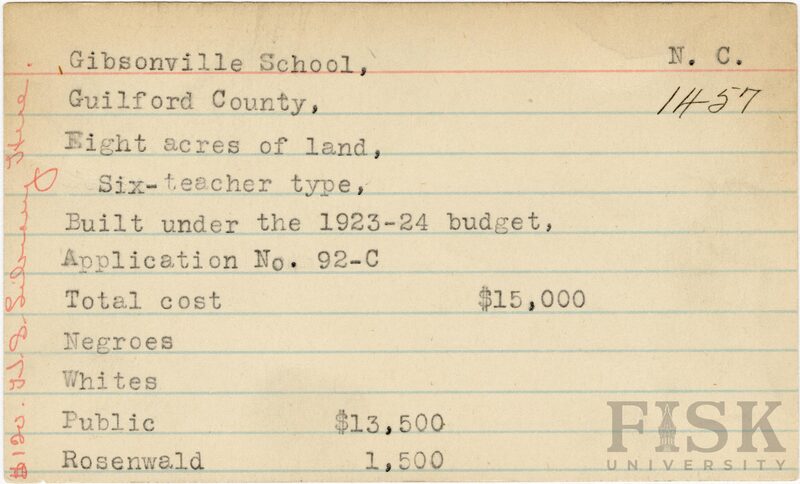 - Julius Rosenwald Fund--Buildings, African American schools--History--20th century, African American schools--Gibsonville School