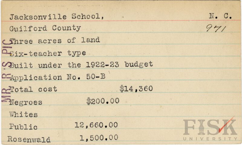 - Rosenwald Fund Card File, The Julius Rosenwald Fund Archives, 1918-1948, John Hope and Aurelia E. Franklin Library
