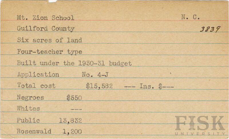 - Rosenwald Fund Card File, The Julius Rosenwald Fund Archives, 1918-1948, John Hope and Aurelia E. Franklin Library