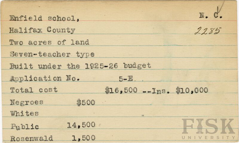 - Julius Rosenwald Fund--Buildings, African American schools--History--20th century, African American schools--Enfield School
