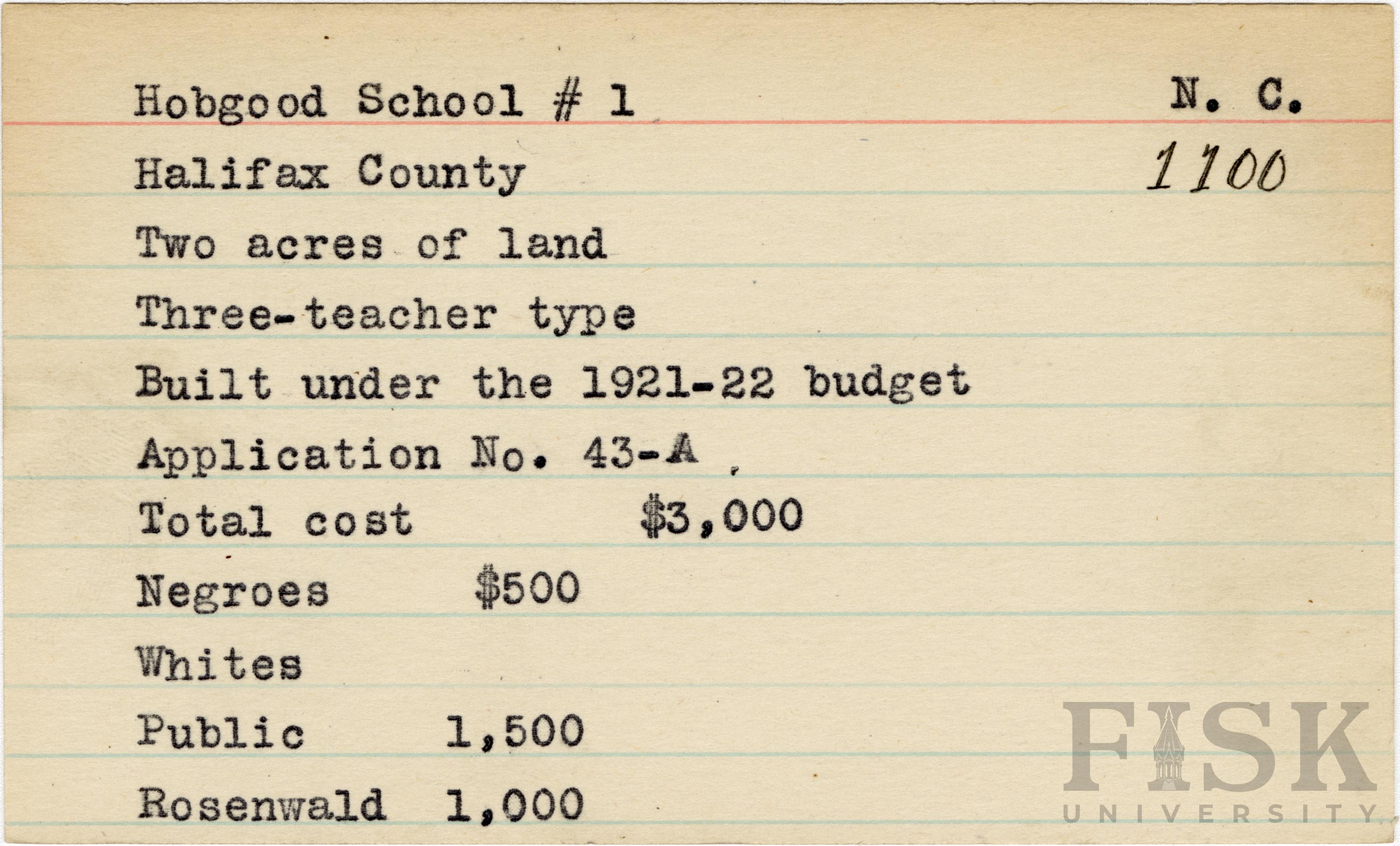 - Rosenwald Fund Card File, The Julius Rosenwald Fund Archives, 1918-1948, John Hope and Aurelia E. Franklin Library