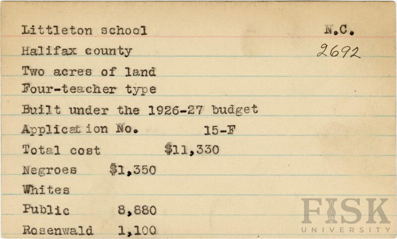 - Julius Rosenwald Fund--Buildings, African American schools--History--20th century, African American schools--Littleton School
