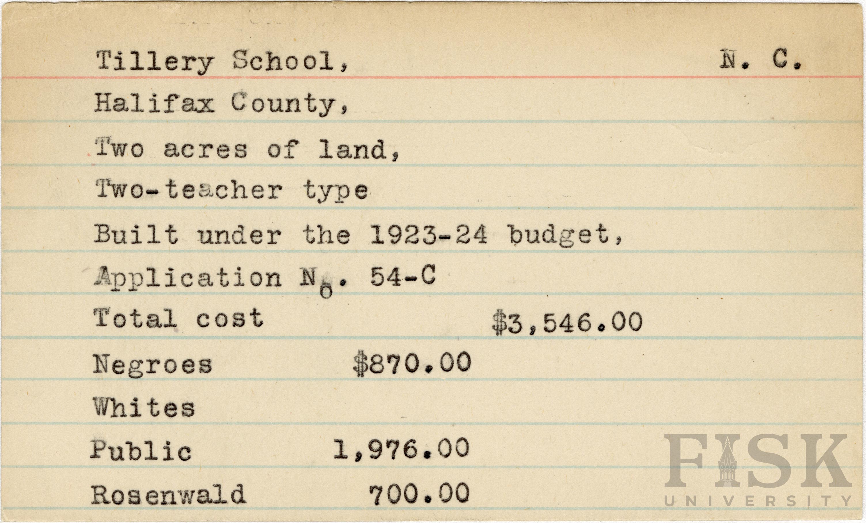 - Julius Rosenwald Fund--Buildings, African American schools--History--20th century, African American schools--Tillery School