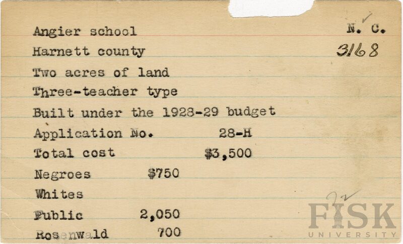 - Julius Rosenwald Fund--Buildings, African American schools--History--20th century, African American schools--Angier School