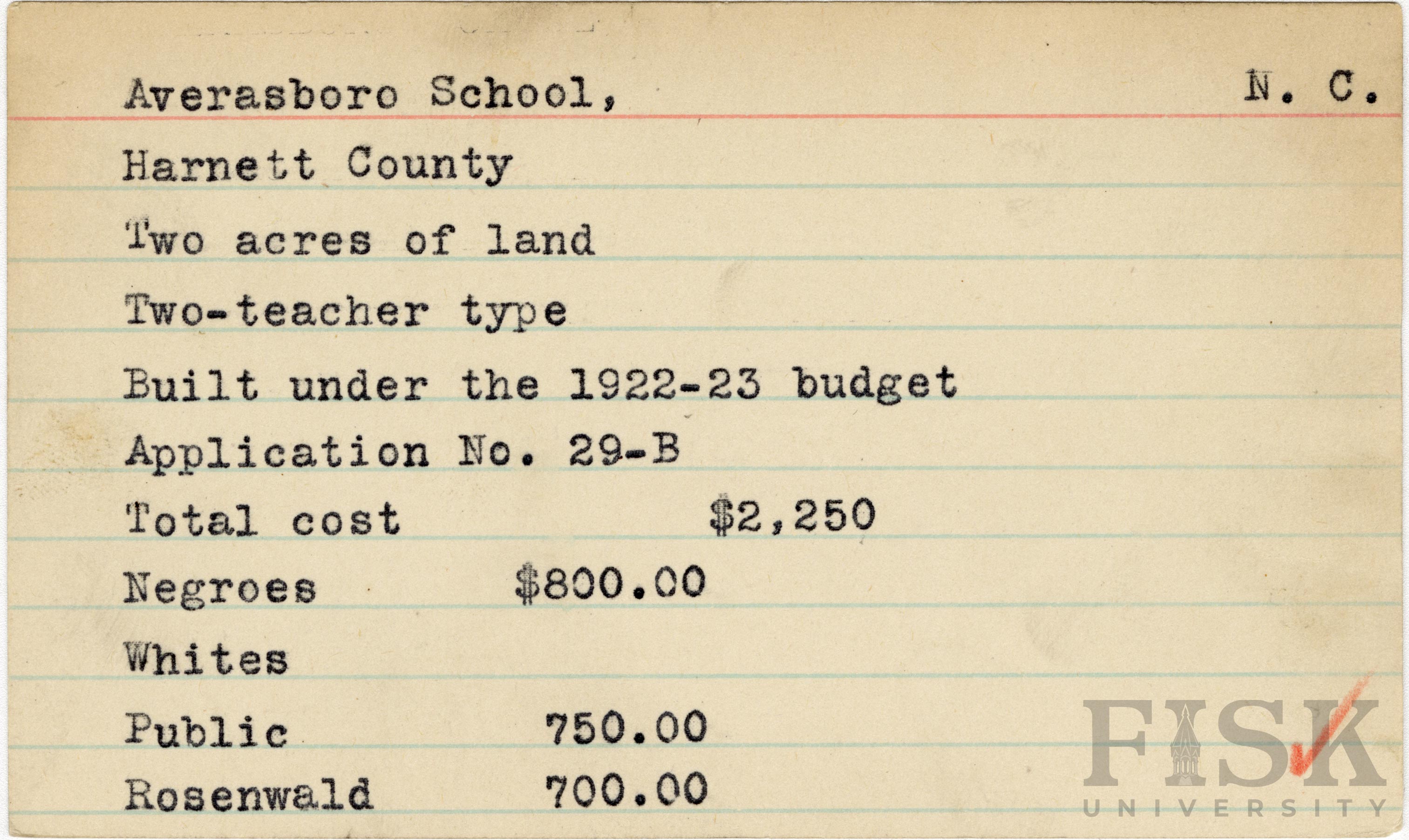 - Rosenwald Fund Card File, The Julius Rosenwald Fund Archives, 1918-1948, John Hope and Aurelia E. Franklin Library