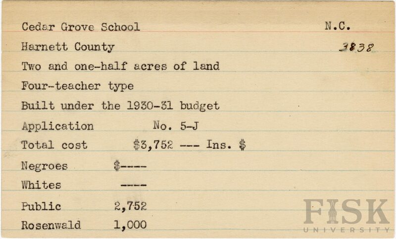 - School card for Cedar Grove School in Harnett County, North Carolina