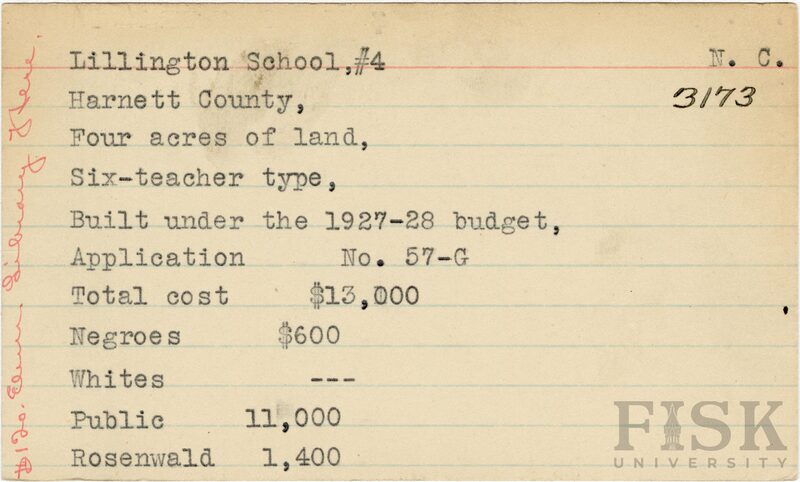 - Julius Rosenwald Fund--Buildings, African American schools--History--20th century, African American schools--Lillington School No. 4