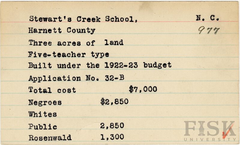 - School card for Stewart's Creek School in Harnett County, North Carolina