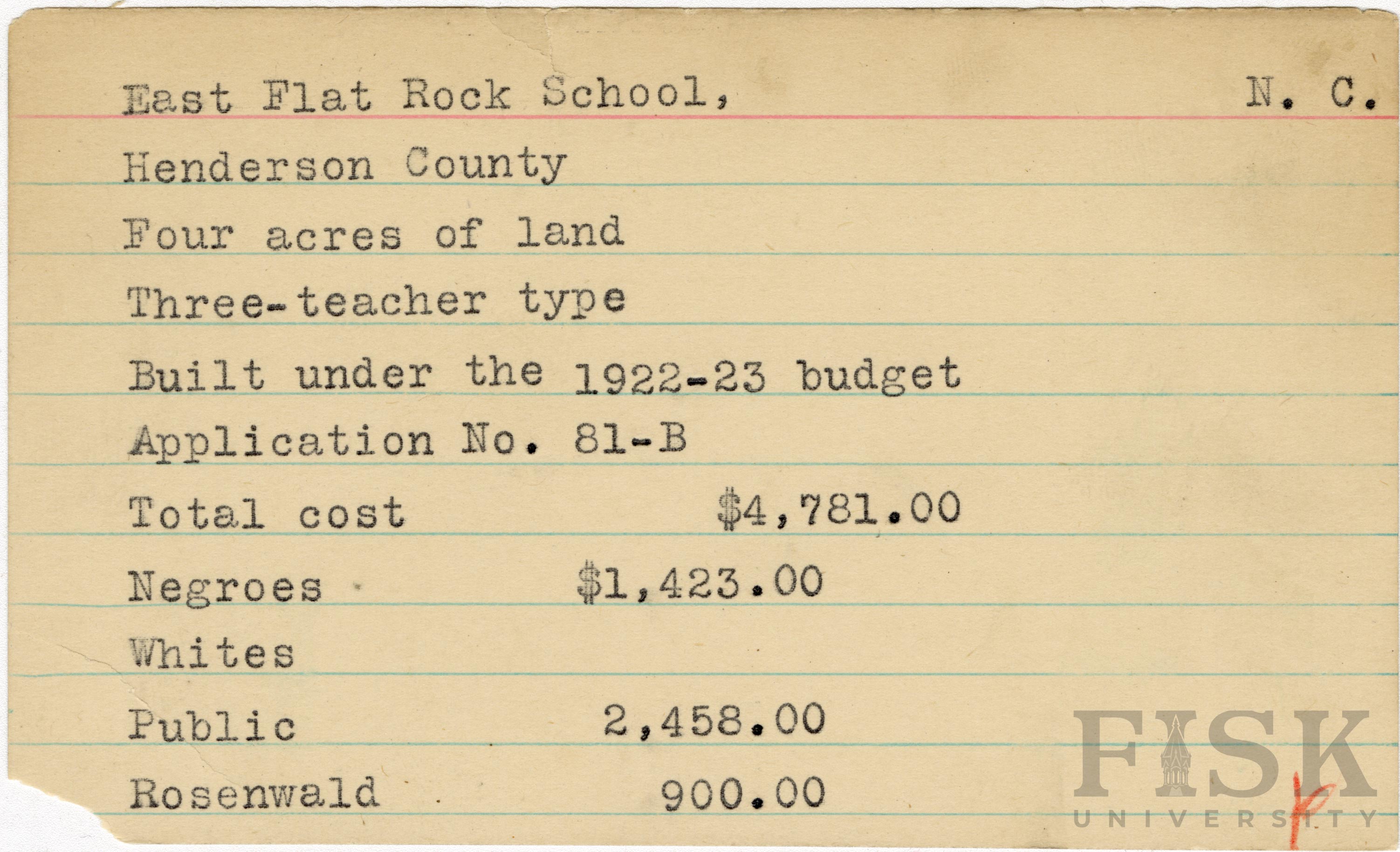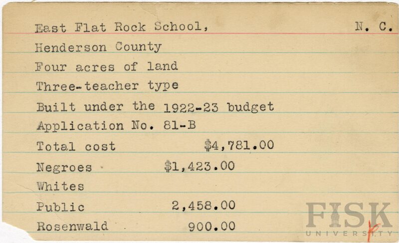 - Julius Rosenwald Fund--Buildings, African American schools--History--20th century, African American schools--East Flat Rock School