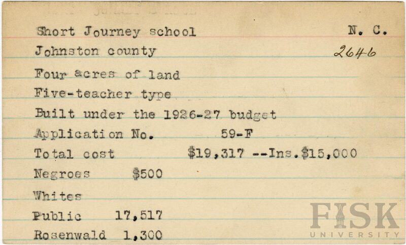 - Julius Rosenwald Fund--Buildings, African American schools--History--20th century, African American schools--Short Journey School