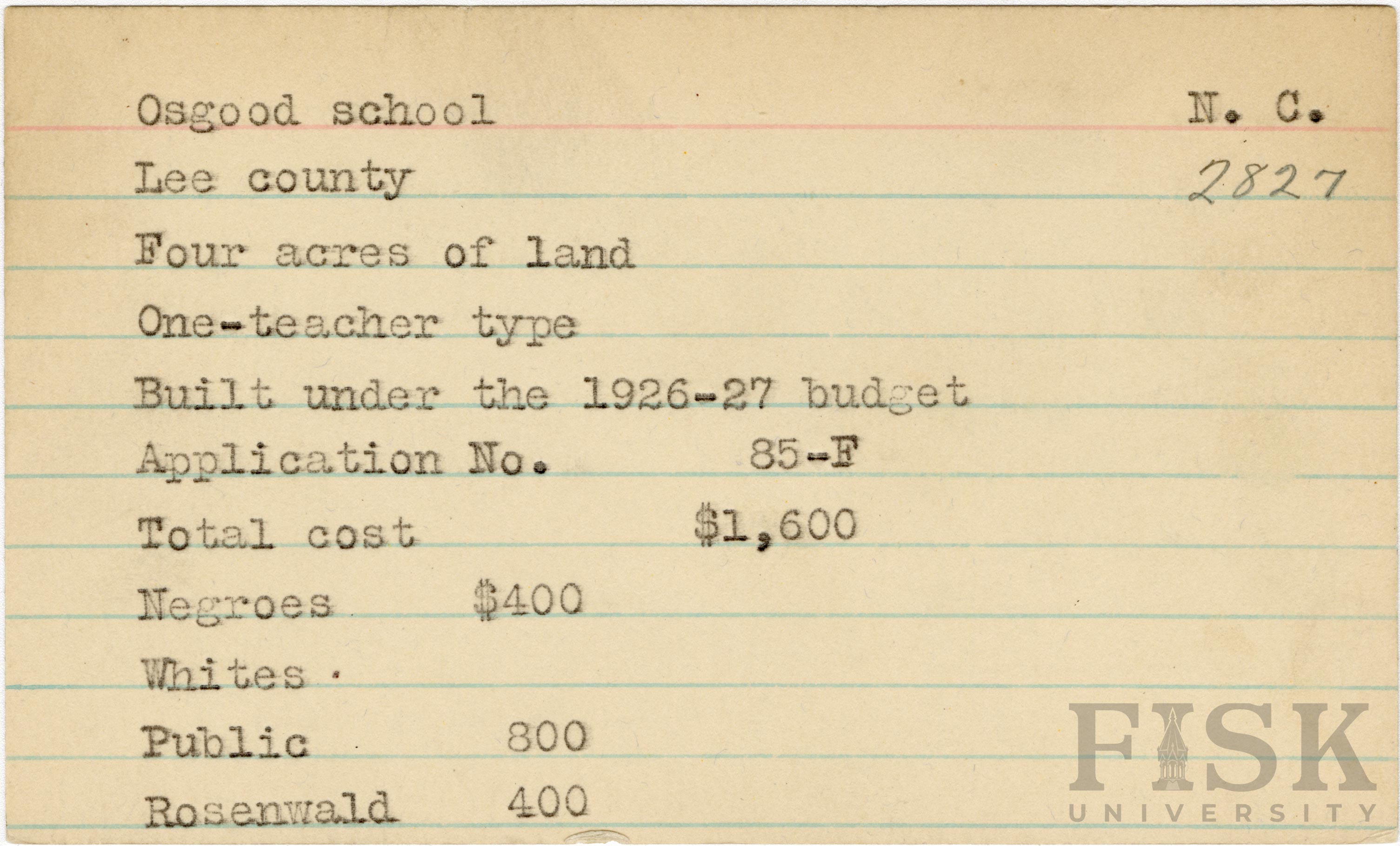 - Julius Rosenwald Fund--Buildings, African American schools--History--20th century, African American schools--Osgood School