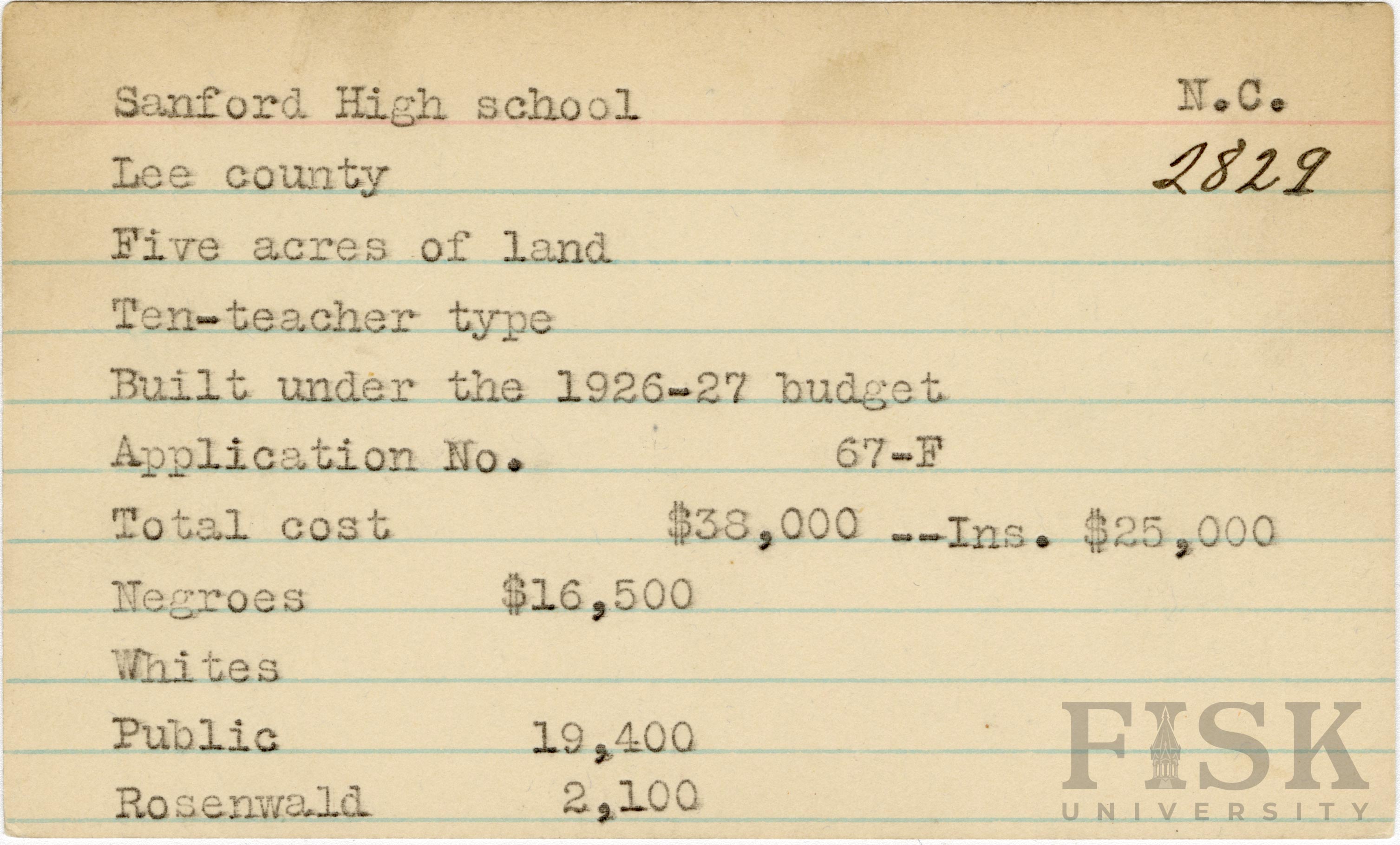 - Julius Rosenwald Fund--Buildings, African American schools--History--20th century, African American schools--Sanford High School