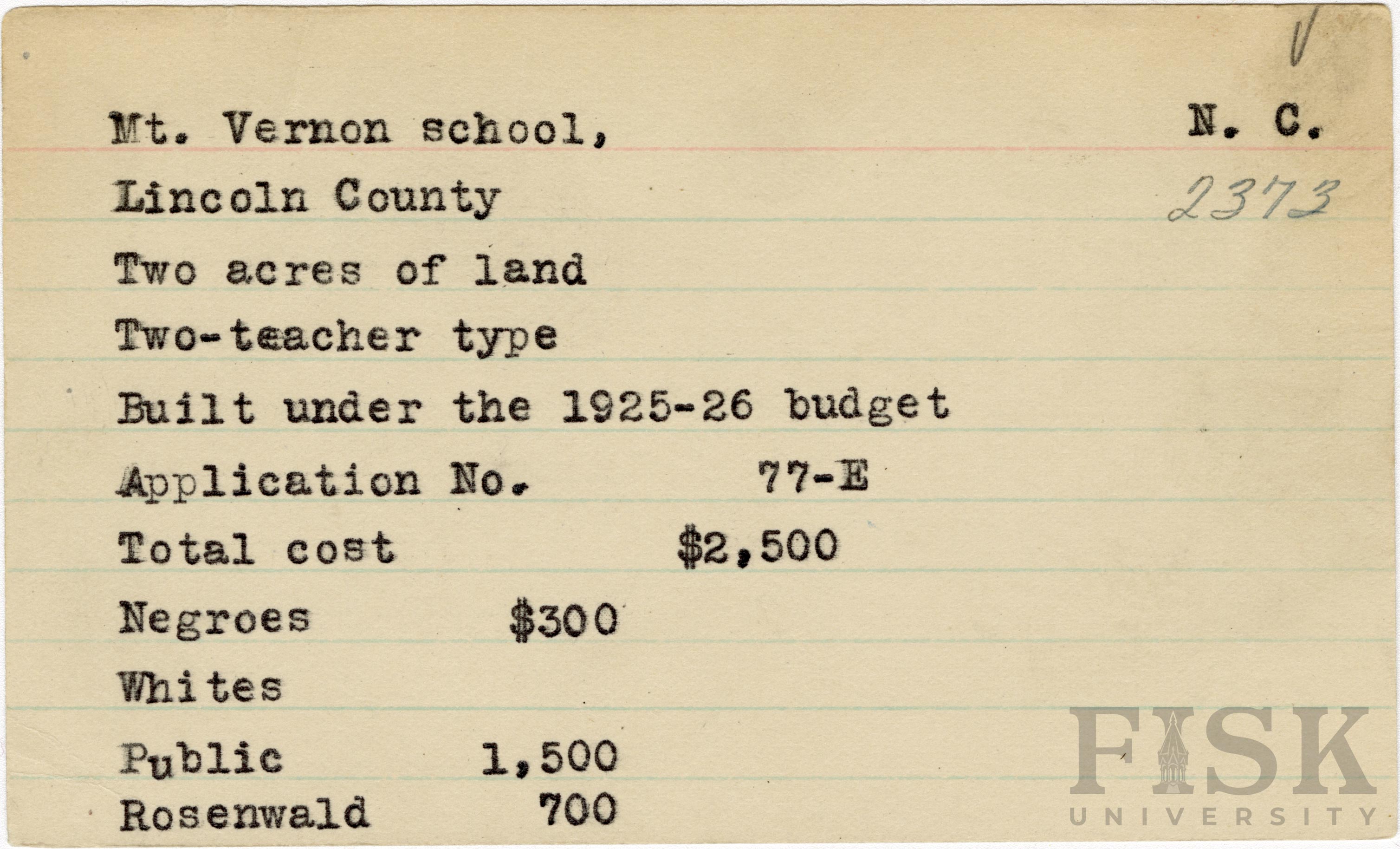 - Rosenwald Fund Card File, The Julius Rosenwald Fund Archives, 1918-1948, John Hope and Aurelia E. Franklin Library