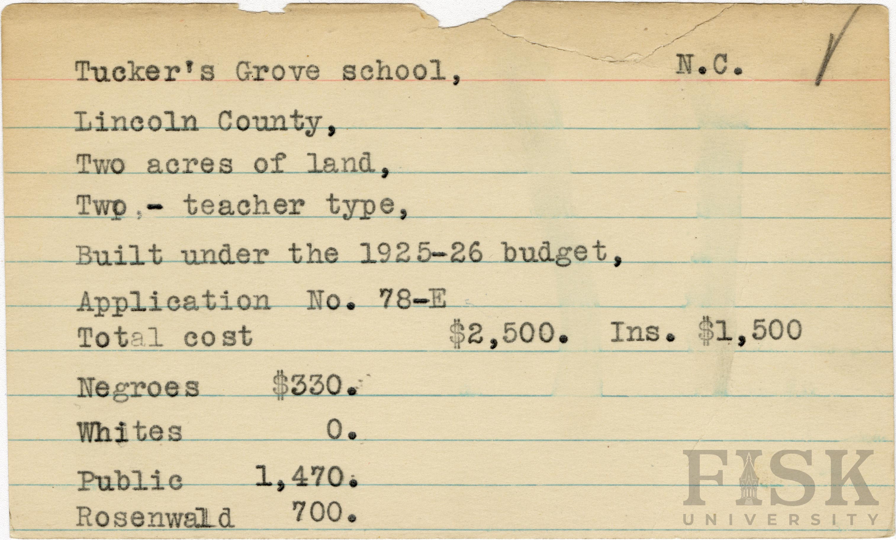 - Rosenwald Fund Card File, The Julius Rosenwald Fund Archives, 1918-1948, John Hope and Aurelia E. Franklin Library