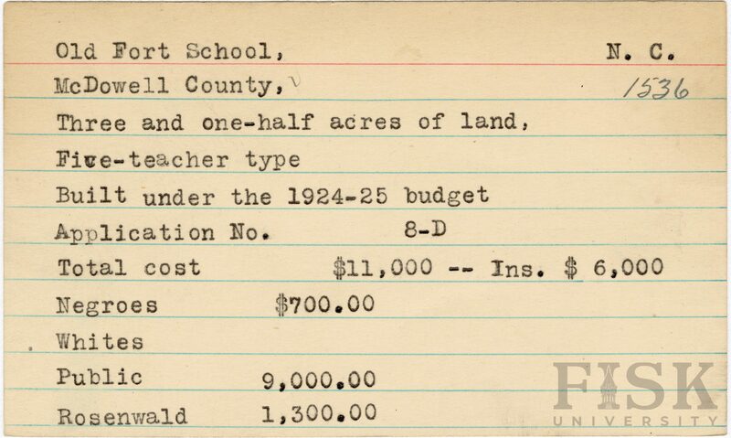 - Julius Rosenwald Fund--Buildings, African American schools--History--20th century, African American schools--Old Fort School