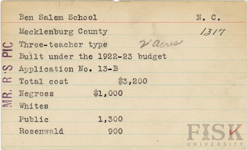 - Julius Rosenwald Fund--Buildings, African American schools--History--20th century, African American schools--Ben Salem School