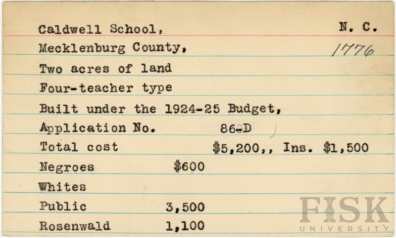 - Julius Rosenwald Fund--Buildings, African American schools--History--20th century, African American schools--Caldwell School