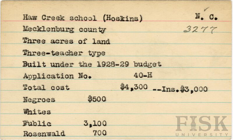 - Julius Rosenwald Fund--Buildings, African American schools--History--20th century, African American schools--Haw Creek School