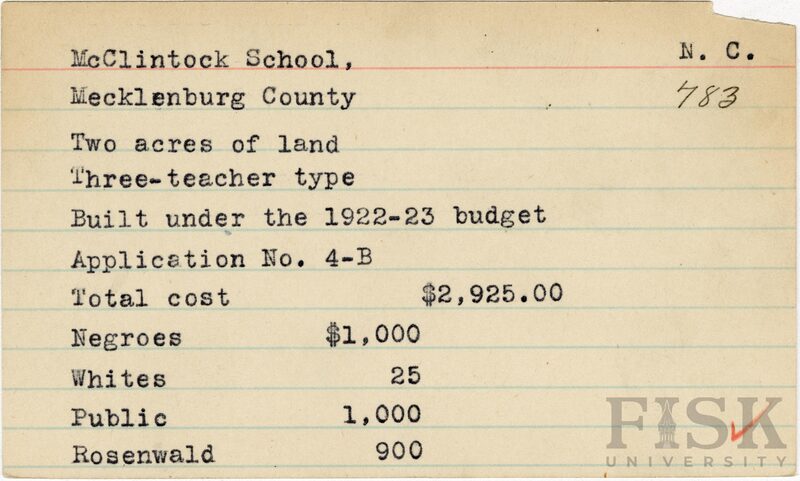 - Julius Rosenwald Fund--Buildings, African American schools--History--20th century, African American schools--McClintock School