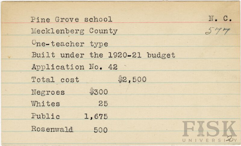 School card for Pine Grove School in Mecklenburg County, North Carolina