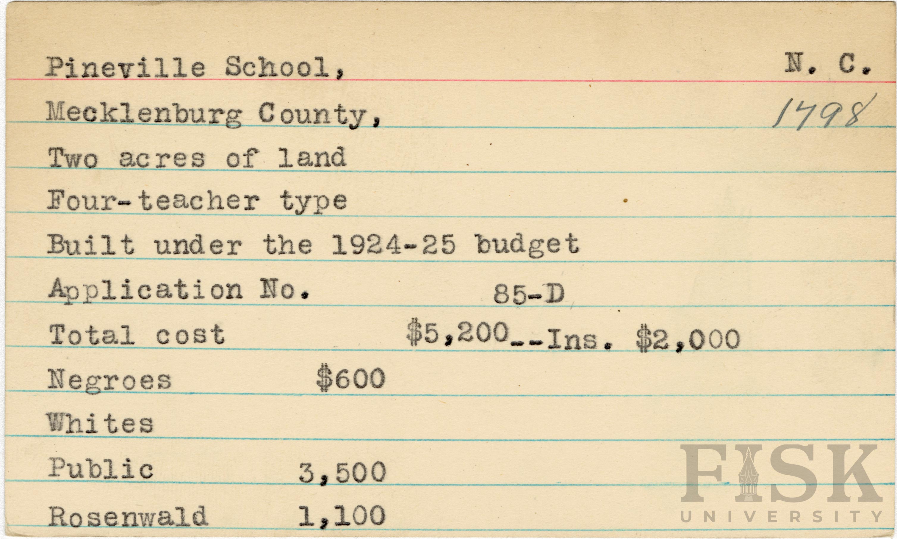 - Julius Rosenwald Fund--Buildings, African American schools--History--20th century, African American schools--Pineville School
