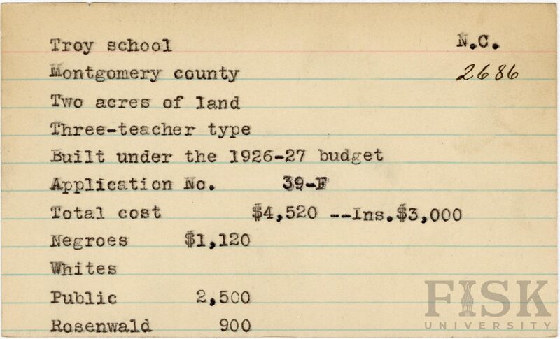 - Rosenwald Fund Card File, The Julius Rosenwald Fund Archives, 1918-1948, John Hope and Aurelia E. Franklin Library