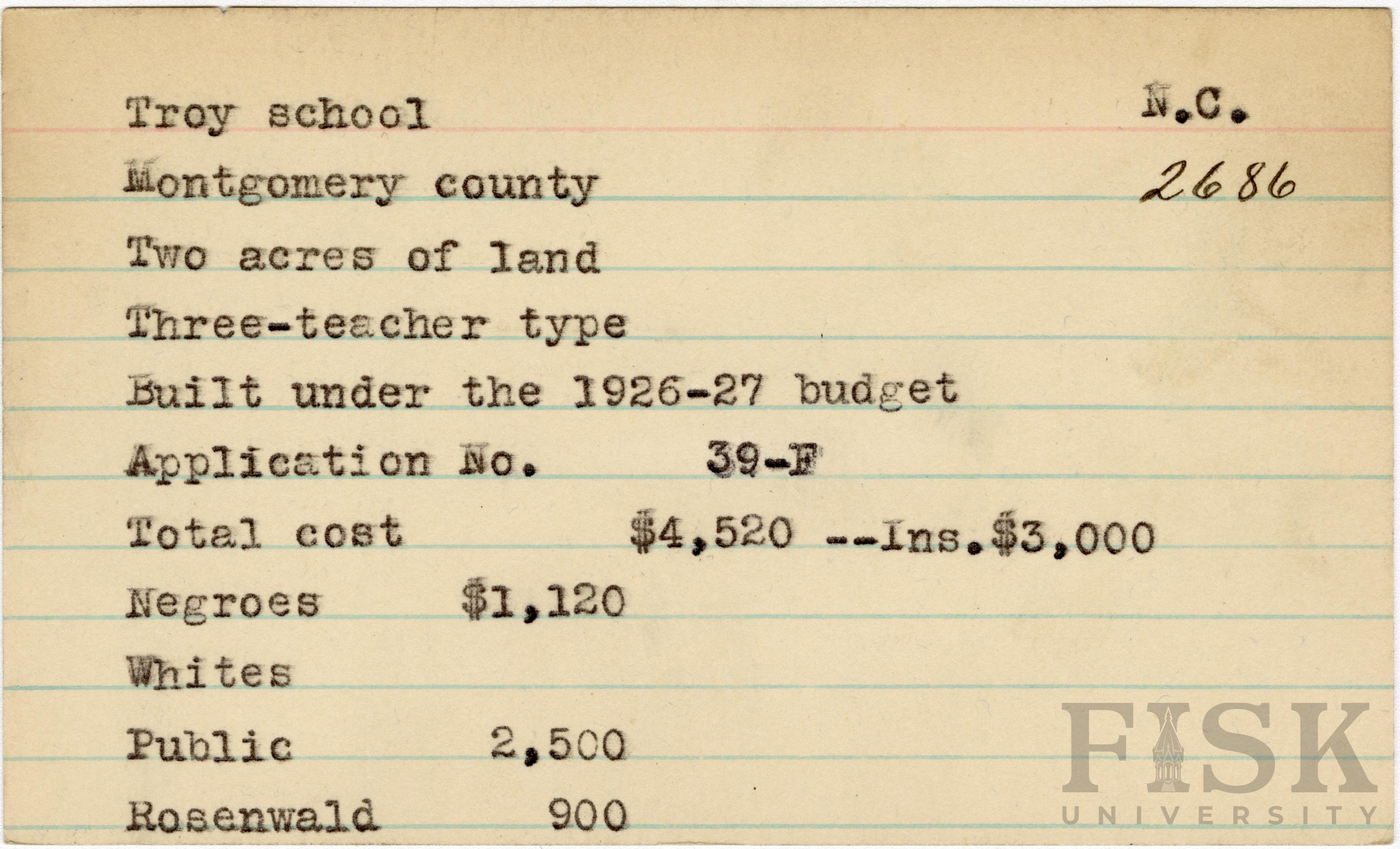 - Julius Rosenwald Fund--Buildings, African American schools--History--20th century, African American schools--Troy School