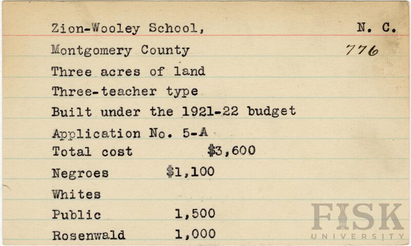 - Julius Rosenwald Fund--Buildings, African American schools--History--20th century, African American schools--Zion-Wooley School
