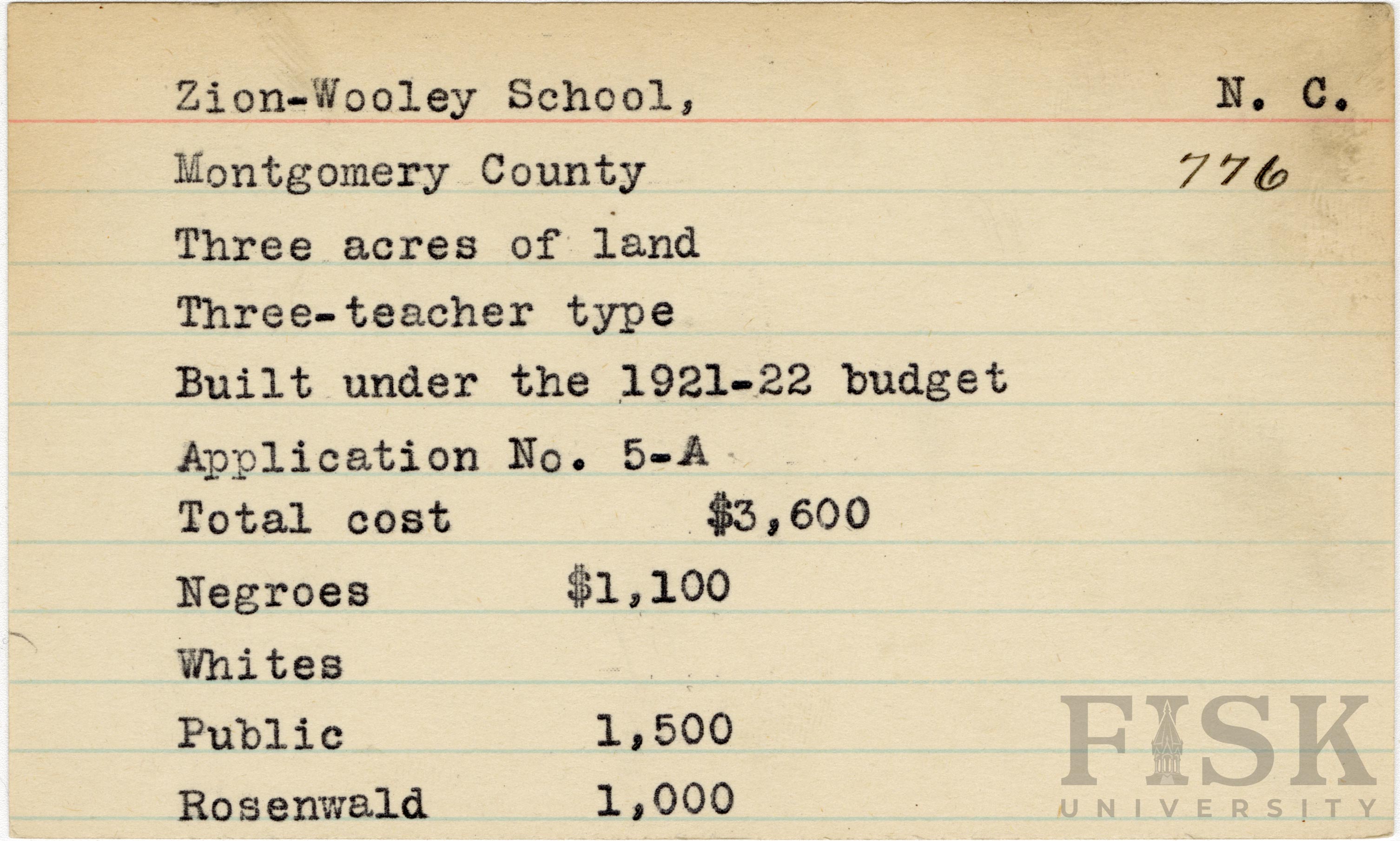 - School card for Zion-Wooley School in Montgomery County, North Carolina