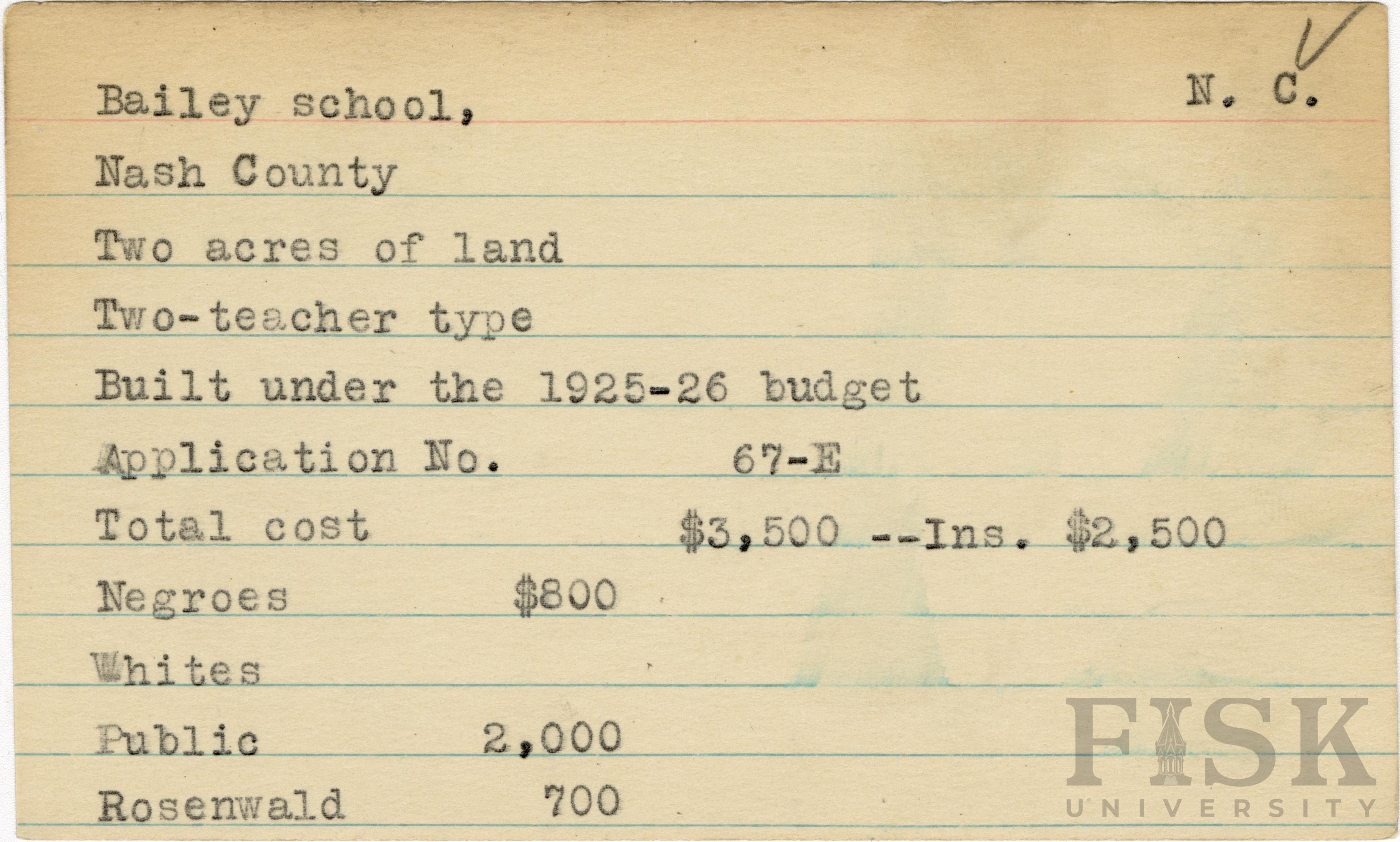 - Rosenwald Fund Card File, The Julius Rosenwald Fund Archives, 1918-1948, John Hope and Aurelia E. Franklin Library