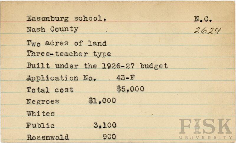 - Rosenwald Fund Card File, The Julius Rosenwald Fund Archives, 1918-1948, John Hope and Aurelia E. Franklin Library