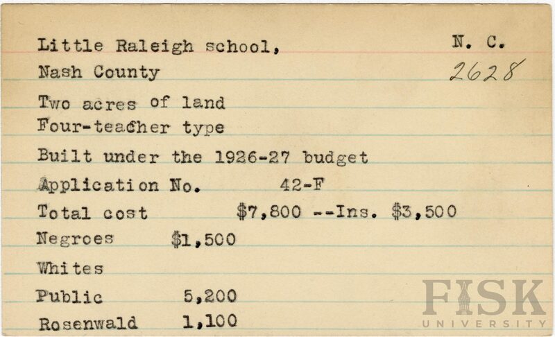 - Julius Rosenwald Fund--Buildings, African American schools--History--20th century, African American schools--Little Raleigh School