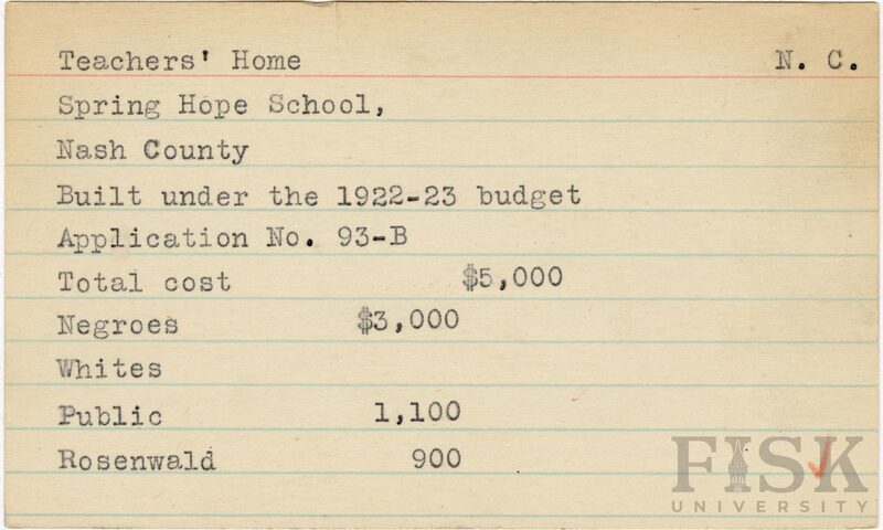 School card for the teacher's home at Spring Hope School in Nash County, North Carolina