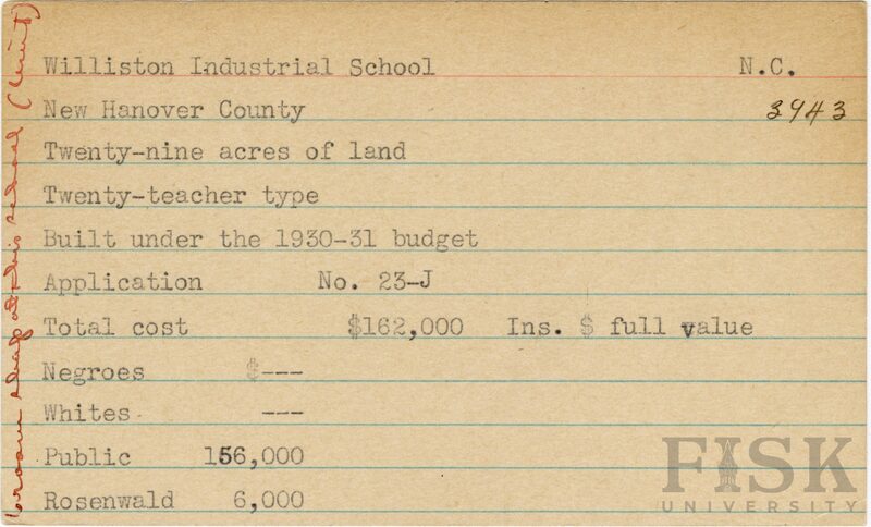 - Williston Industrial School in New Hanover County, North Carolina