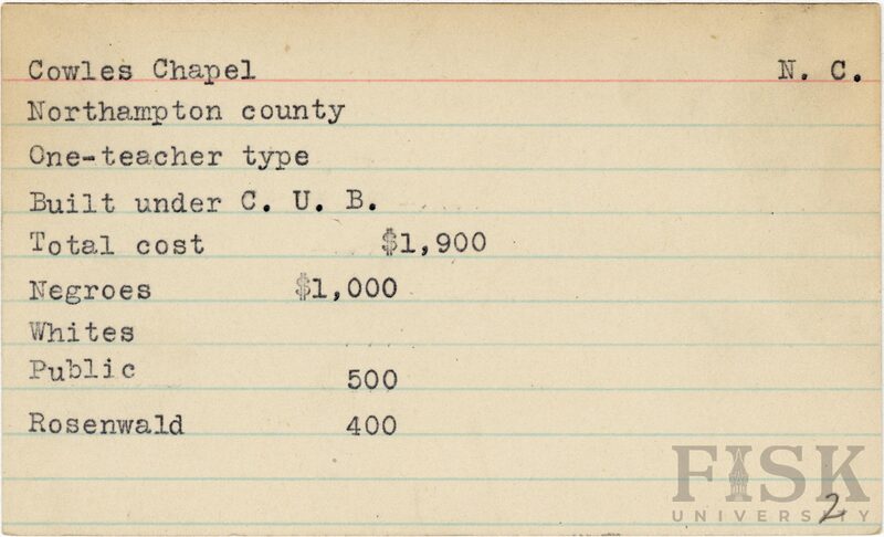 - Rosenwald Fund Card File, The Julius Rosenwald Fund Archives, 1918-1948, John Hope and Aurelia E. Franklin Library