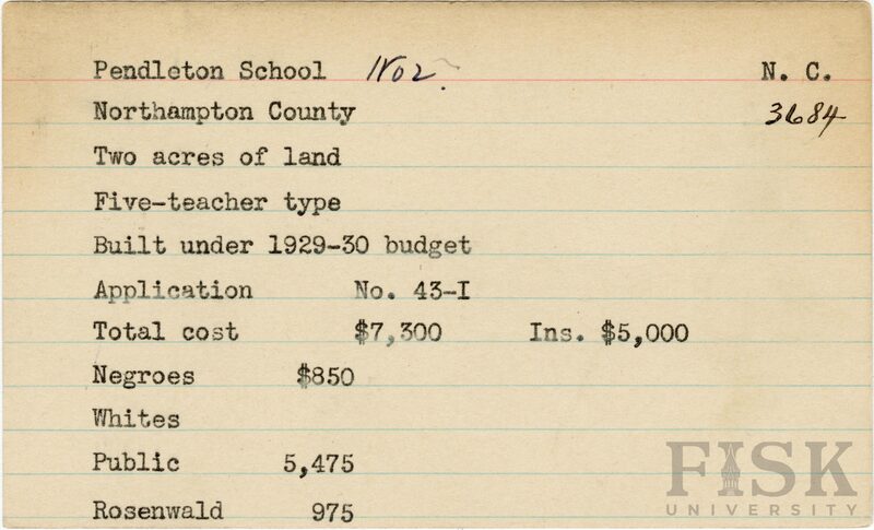 - Julius Rosenwald Fund--Buildings, African American schools--History--20th century, African American schools--Pendleton School No. 2