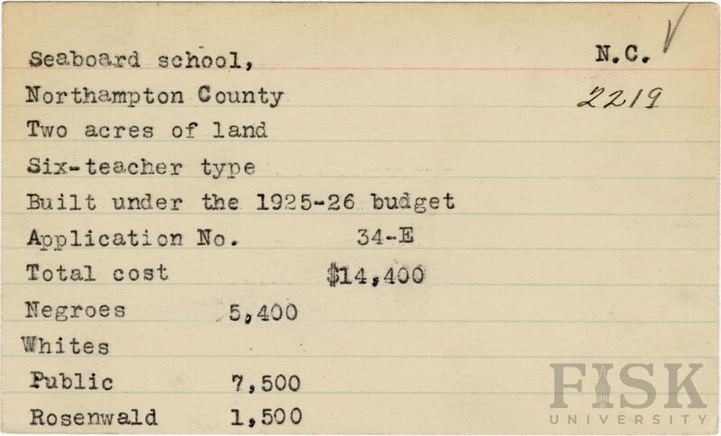 - School card for Seaboard School in Northampton County, North Carolina