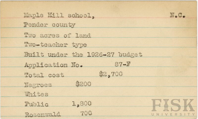 - Rosenwald Fund Card File, The Julius Rosenwald Fund Archives, 1918-1948, John Hope and Aurelia E. Franklin Library