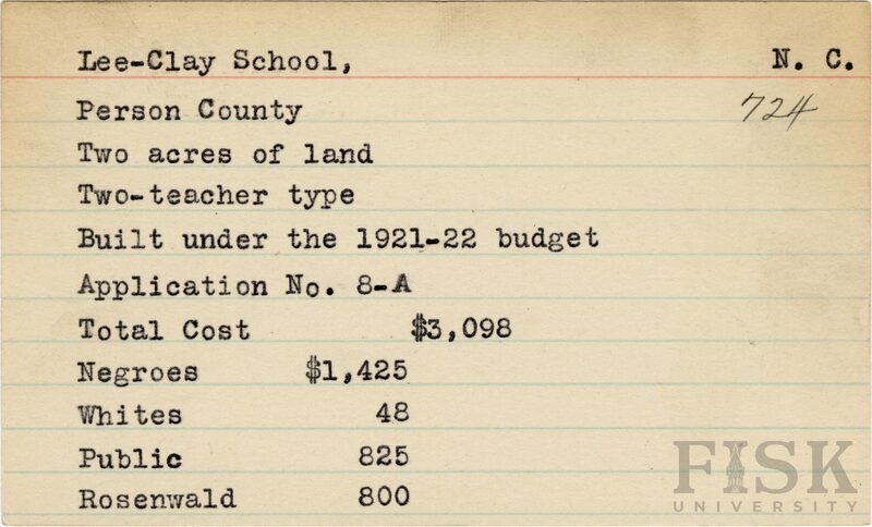 - Rosenwald Fund Card File, The Julius Rosenwald Fund Archives, 1918-1948, John Hope and Aurelia E. Franklin Library