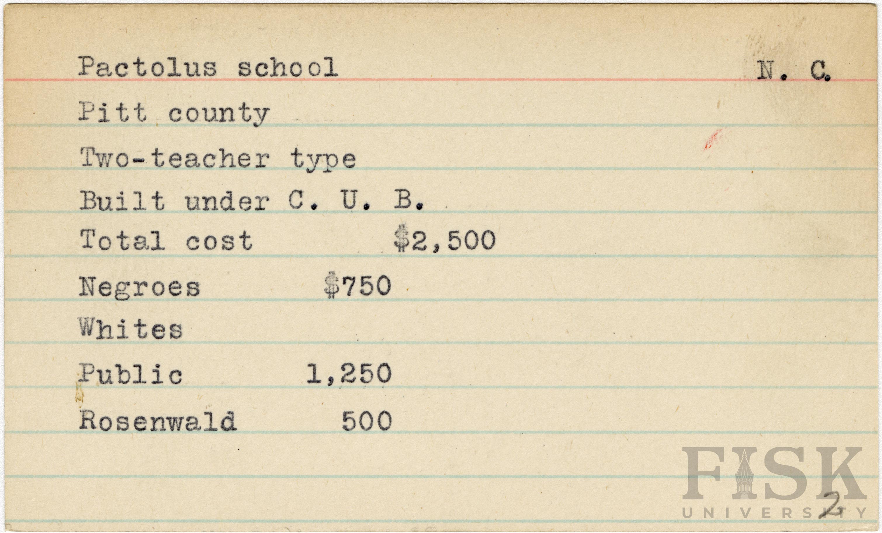 - Julius Rosenwald Fund--Buildings, African American schools--History--20th century, African American schools--Pactolus School
