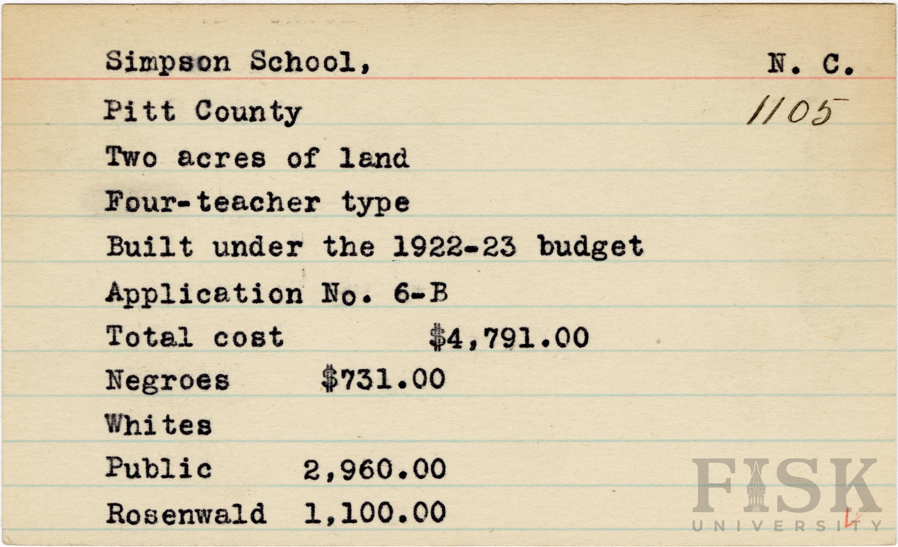 - Julius Rosenwald Fund--Buildings, African American schools--History--20th century, African American schools--Simpson School